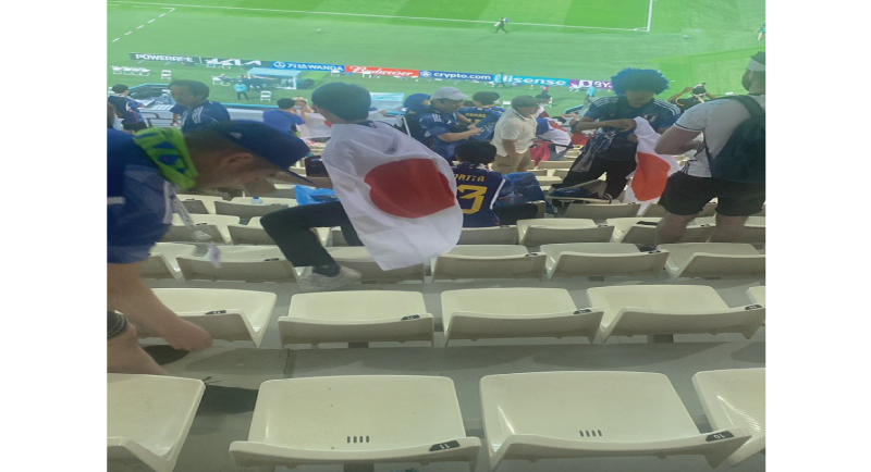 In what is becoming an increasingly common sight, Japanese fans stayed behind after their team’s win over Germany on Wednesday and helped to clean up the Khalifa International Stadium.